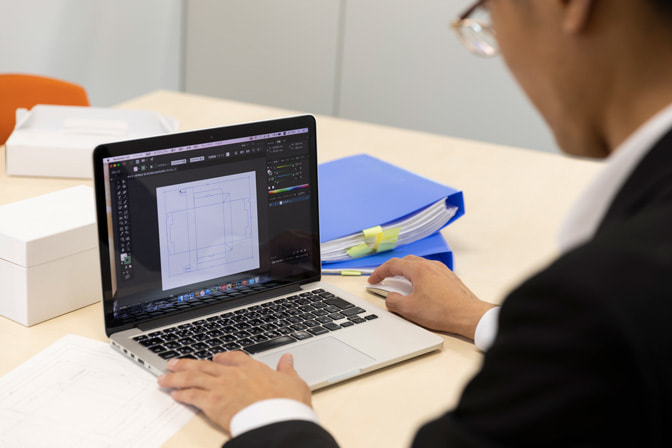 営業マンが直接お伺いしお客様がどんなパッケージが御望みなのかコンセプトや函の形状、材質について打ち合わせいたします。