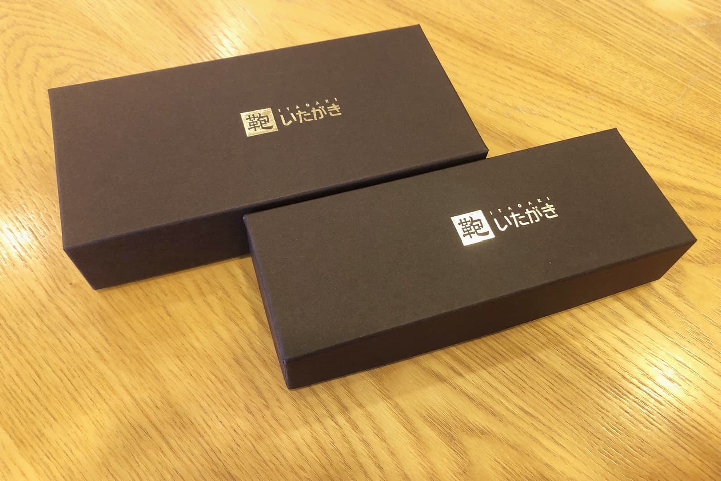 蓋天面にロゴ金箔押しをし、より高級感を持たせております。